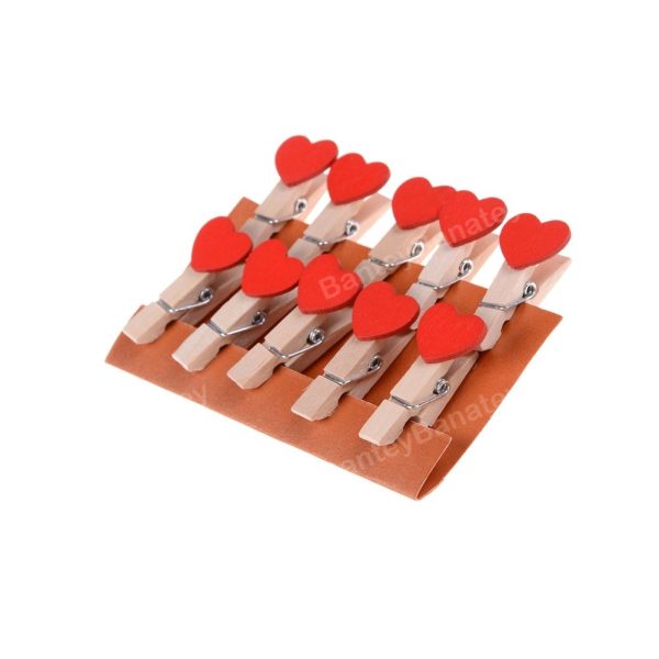 Wooden Clip Heart Printed Pack of 10 Pcs