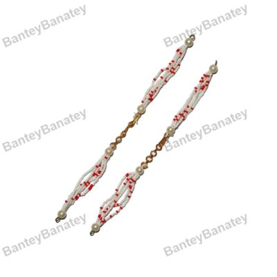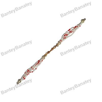 Golden adjustable Chain for Rakhi / Bracelet Type 14 (white and red small pearls)