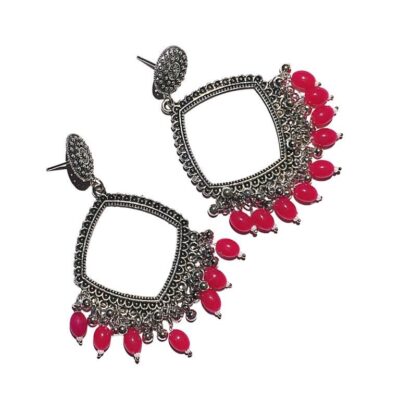 Silver Jhumka Kite Shape Pink Beads