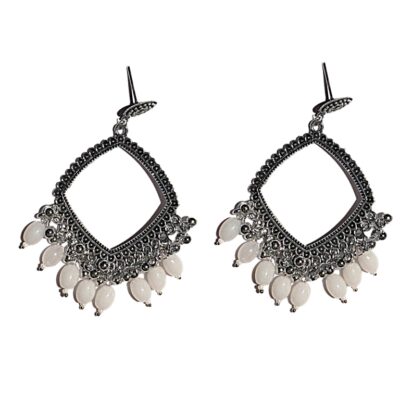 Silver Jhumka Kite Shape White Beads