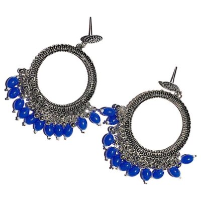 Silver Jhumka Round Shape Blue Beads