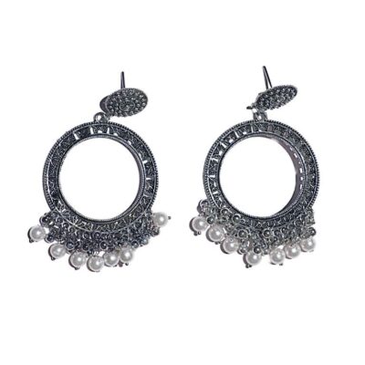 Silver Jhumka Round Shape White Beads